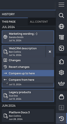 The publishing history now lets you compare pages in any version of the published content with the corresponding page in any other version. Several of our customers had asked for this to be made possible.