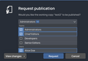 From now on, you can still request a publish from individual users, but alternatively or additionally from entire teams. For this, the “request publication” dialog determines the teams and users permitted to publish the working copy concerned, and offers them for selection. If a team is selected, all of its members are notified.